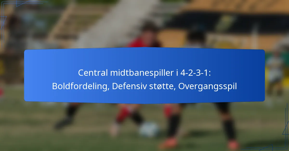 Den centrale midtbanespiller i en 4-2-3-1 formation er afgørende for at forbinde forsvar og angreb, lette boldfordeling og yde defensiv støtte. Denne rolle kræver en blanding af taktisk bevidsthed, tekniske færdigheder og fysisk udholdenhed for effektivt at håndtere overgange og opretholde holdets form.